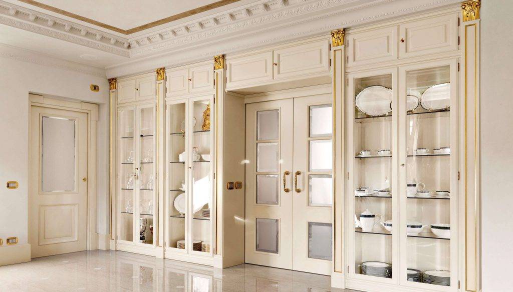 Неоклассический или современный. Для них характерно использование глянцевой фурнитуры и других элементов декора, сочетание которых добавит особой элегантности.