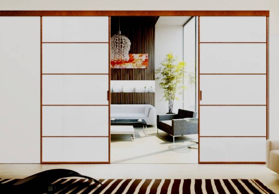 Раздвижные навесные двери удачно монтируются между жилым пространством и нежилым. Например, их можно устанавливать между гостиной и террасой, в проеме между коридором и входом в гостевую комнату. В первом случае логичной будет покупка стеклянных раздвижных дверей. Они отлично пропускают дополнительный свет, расширяют пространство в летнее время при открытии.
