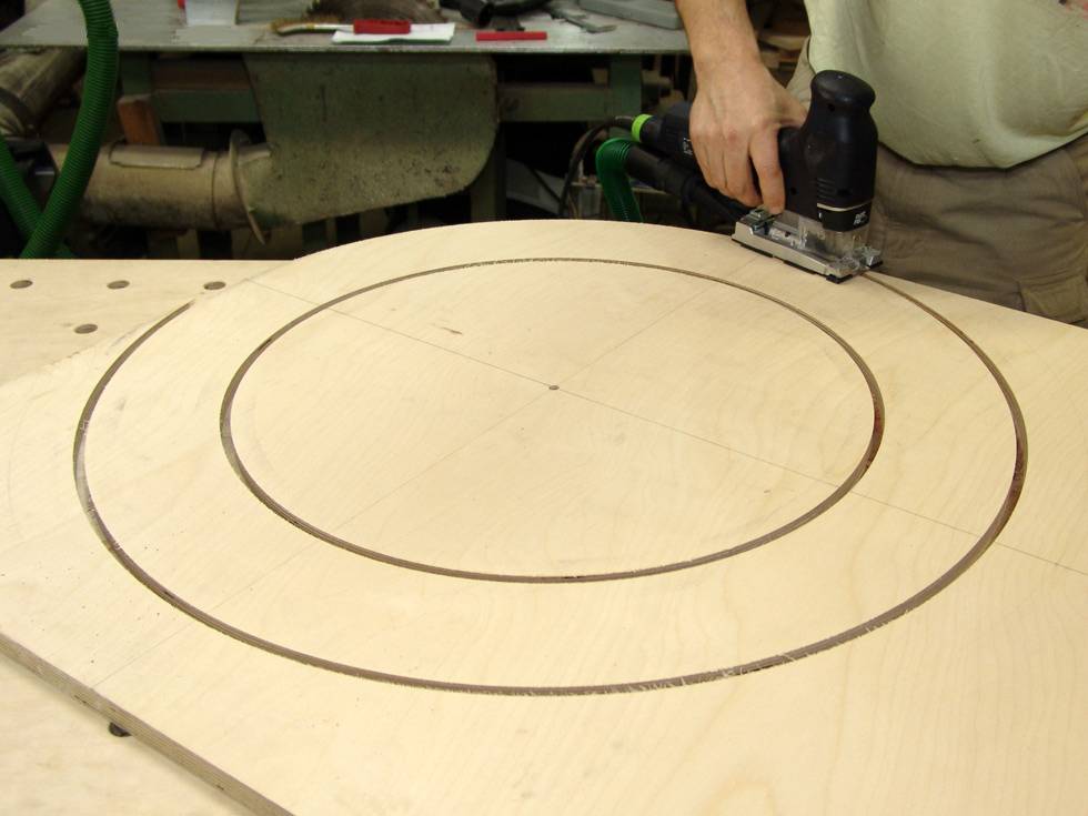 При изготовлении арки из дерева своими руками, распил лучше всего сделать с помощью электролобзика, этот инструмент не оставляет зазубрин на краях деталей и быстро справляется с любыми формами и типами материалов. Для удобства на цельное полотно накладываются лекала в полный размер.