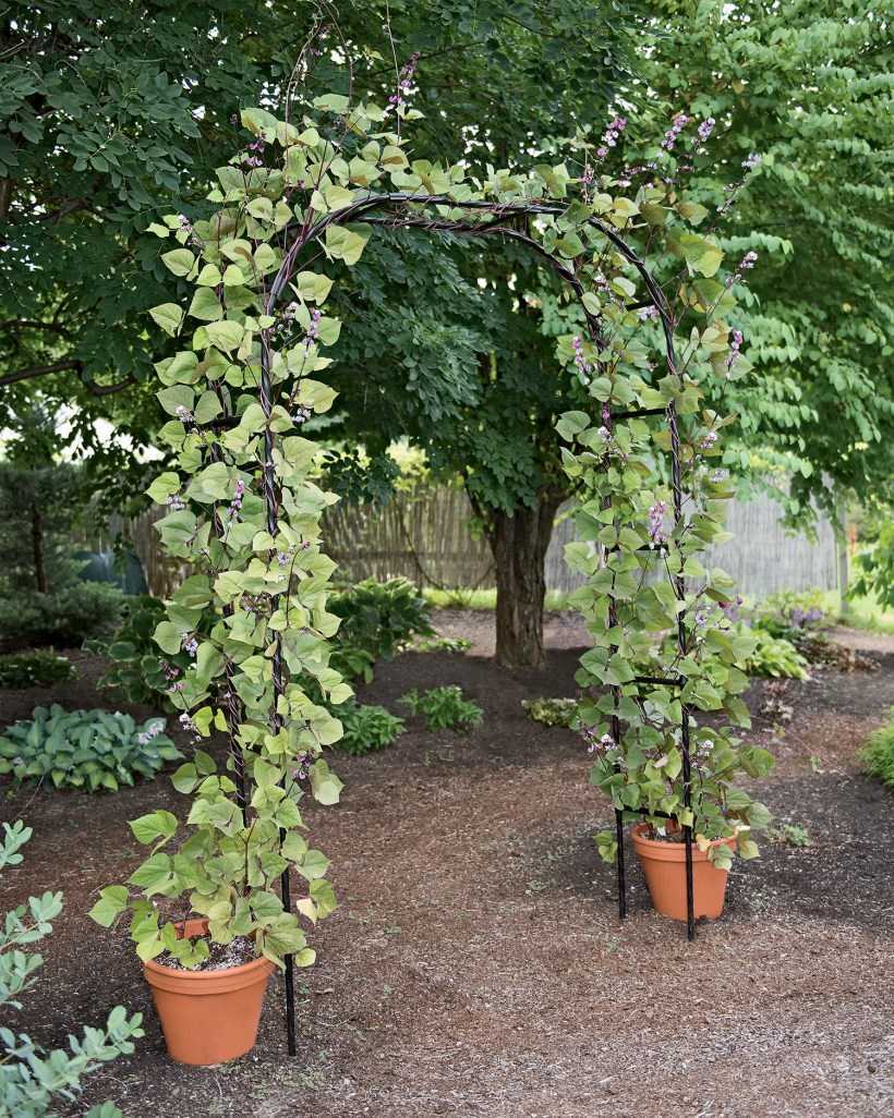 Традиционным украшением арки становятся растения. Садоводам-новичкам можно начать с однолетних или неприхотливых многолетних насаждений. Ими могут стать настурция, душистый горошек, ипомея, девичий виноград, плющ, вьющиеся сорта жимолости.