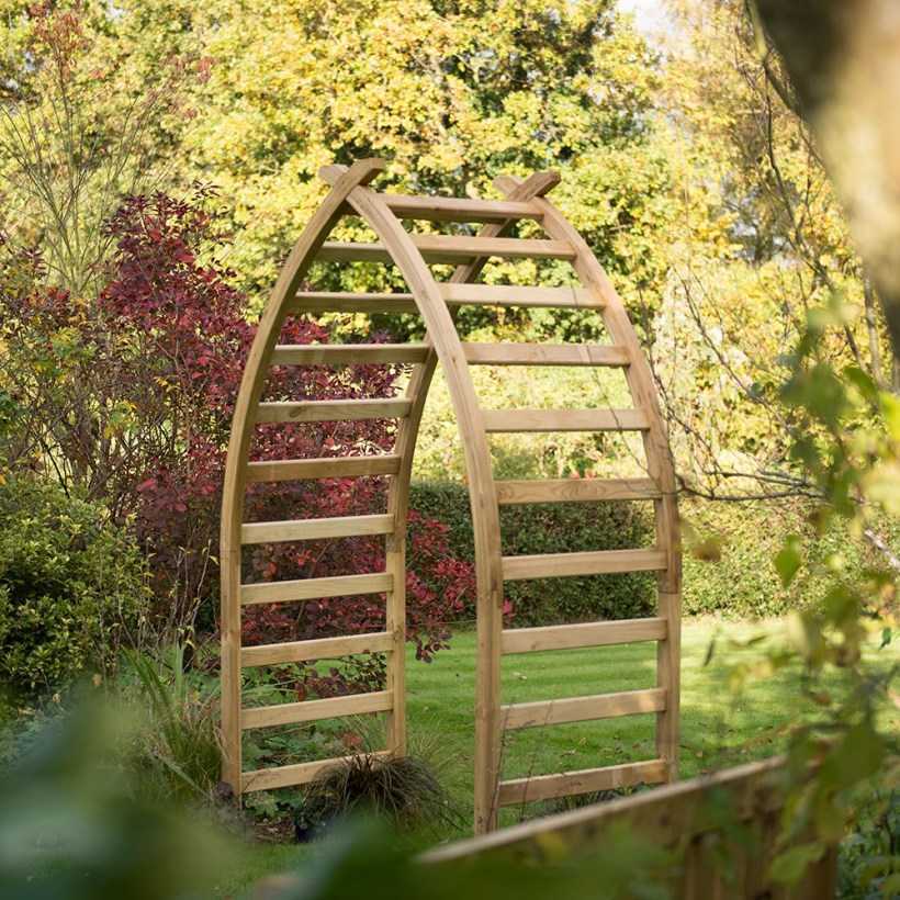 Единственным недостатком станет относительная недолговечность древесины. Увеличить срок службы арки из дерева помогут качественный отбор компонентов и использование специальных пропиток