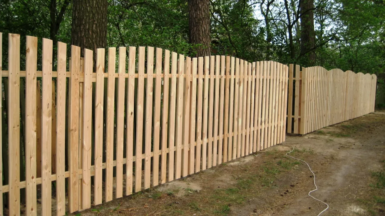 Для получения такого забора можно приобрести недорогой штакетник. Выполняют такие действия: