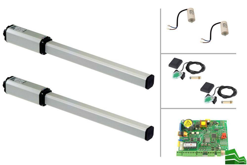 Нужно смотреть, чтобы их ход штока был от 35 см. Для установки нужно просто зафиксировать к створкам, столбам крепежные кронштейны под приводы.