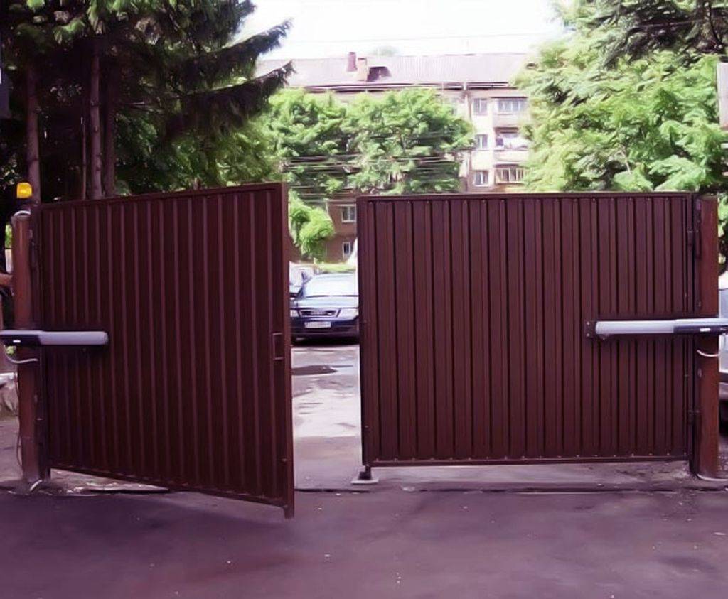 Распашные ворота сами по себе привычны, а потому отличаются надежностью. Главное преимущество двустворчатых конструкций с автоматикой – возможность дистанционного открытия/закрытия с управляющего пульта. Это особенно комфортно зимой.