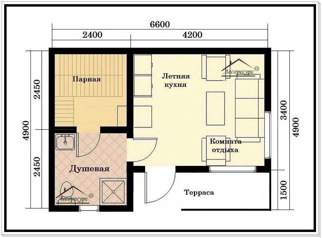Баня с кухней, а также проект её имеют множество плюсов, которые и обуславливают высокую популярность такого типа строения среди россиян. Первым положительным моментом строительства такого здания является то обстоятельство, что вы выносите, таким образом, за жилую зону те помещения, в которых образуются неприятные запахи, генерируются большие объёмы сточных вод, а также выполняются хозяйственно-бытовые работы.