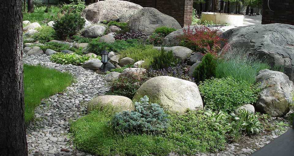Если у вас неровный участок, используйте эту особенность, чтобы сделать подпорную стену. Смастерите ступени из бетона, украсьте их плиткой. Рядом с подпорной стеной посадите невысокие кустарники, которые можно стричь и придавать им округлую форму. Огородите эти растения булыжниками, располагая их на волнистой линии.
