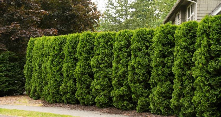 Хвойные деревья, высаженные в виде живой изгороди, предпочитают влажный климат