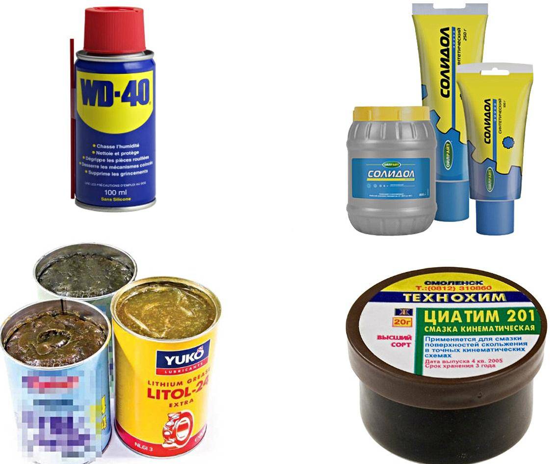 Хорошо показывают себя силиконовые составы, универсальная смазка WD-40 и другие материалы. Перечислить все виды невозможно, так как ассортимент постоянно дополняется, в продажу поступают новые виды смазочных материалов с повышенной эффективностью и сроком действия.