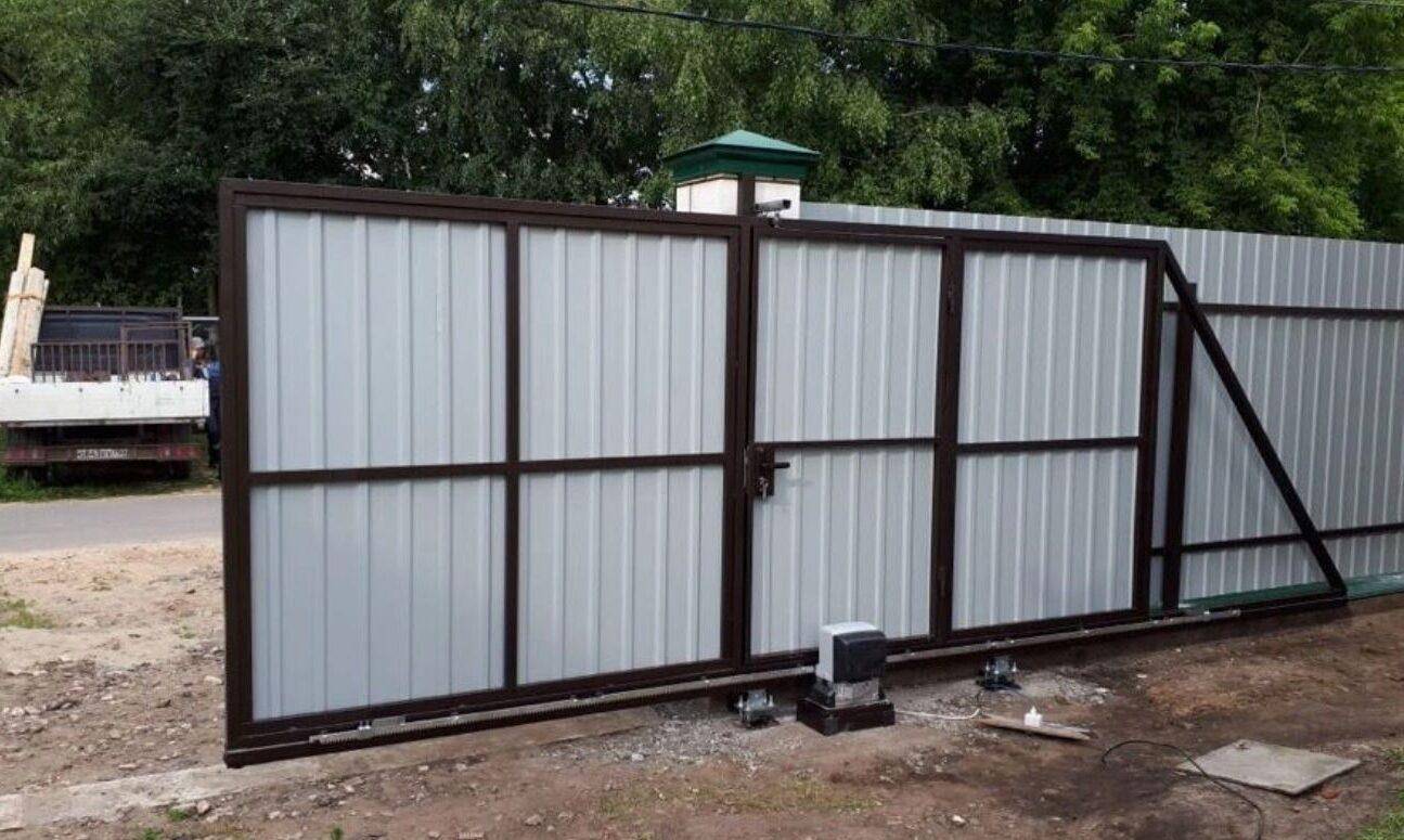 Установка откатных ворот с калиткой