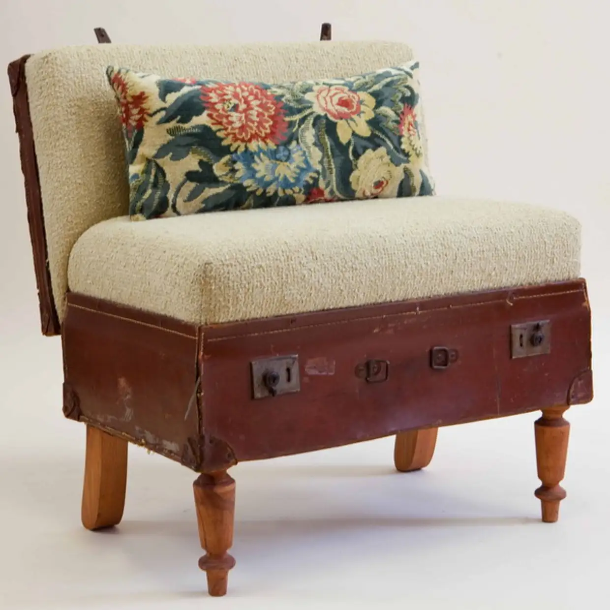 В бывшем Советском Союзе в огромных количествах выпускали добротные массивные чемоданы. Если сохранился такой, то его можно трансформировать в оригинальное удобное кресло.