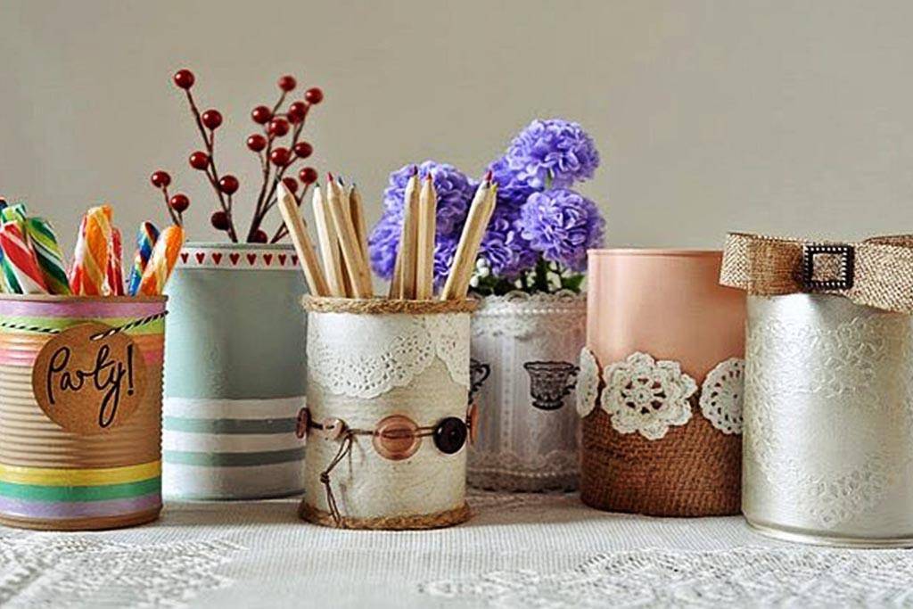 Дети старшего возраста (5-7 класса) могут изготовить из цельного изделия подставку под любые мелочи. Понадобится 1 жестяная банка объемом 0,5-1 л. Она должна быть легкой. Острую кромку родители должны предварительно удалить. Инструкция: