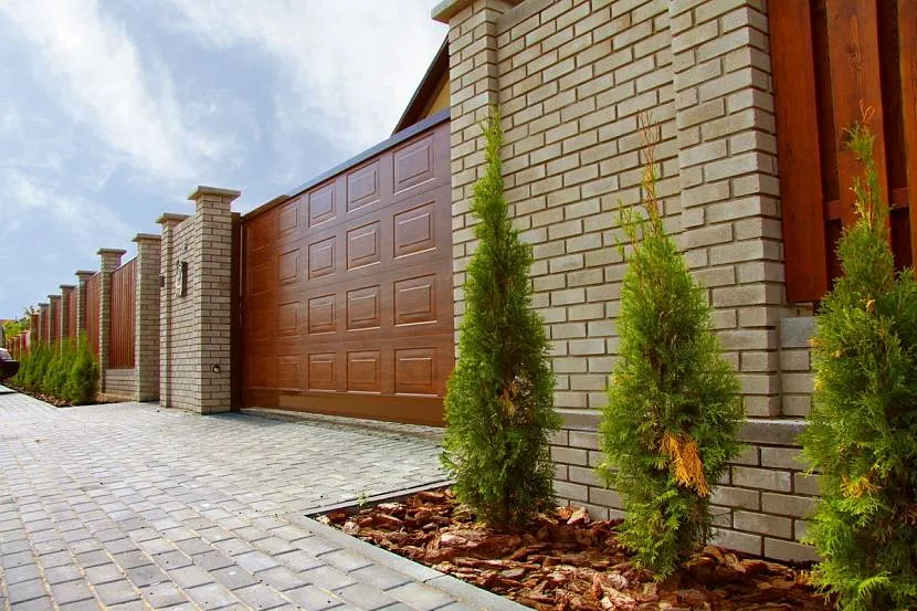 Туи возле забора из кирпичаИсточник design-homes.ru