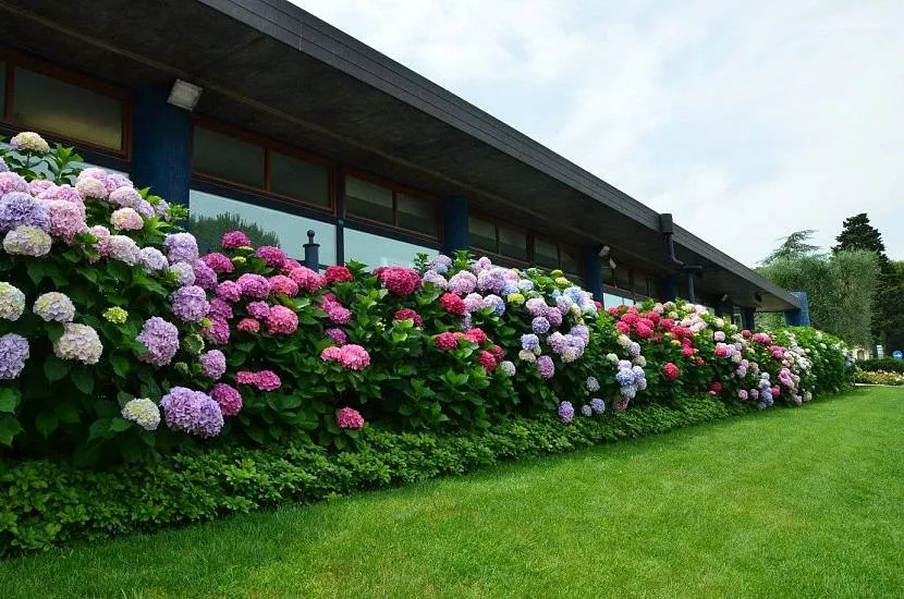 Стена из разноцветных гортензийИсточник greensotka.ru