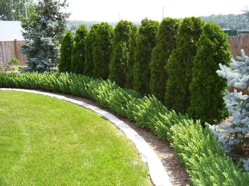 Туя быстро растет, неприхотлива в уходе. При этом она стойко переносит как низкие температуры, так и жару, поэтому ее можно сажать вдоль забора с южной и северной стороны.