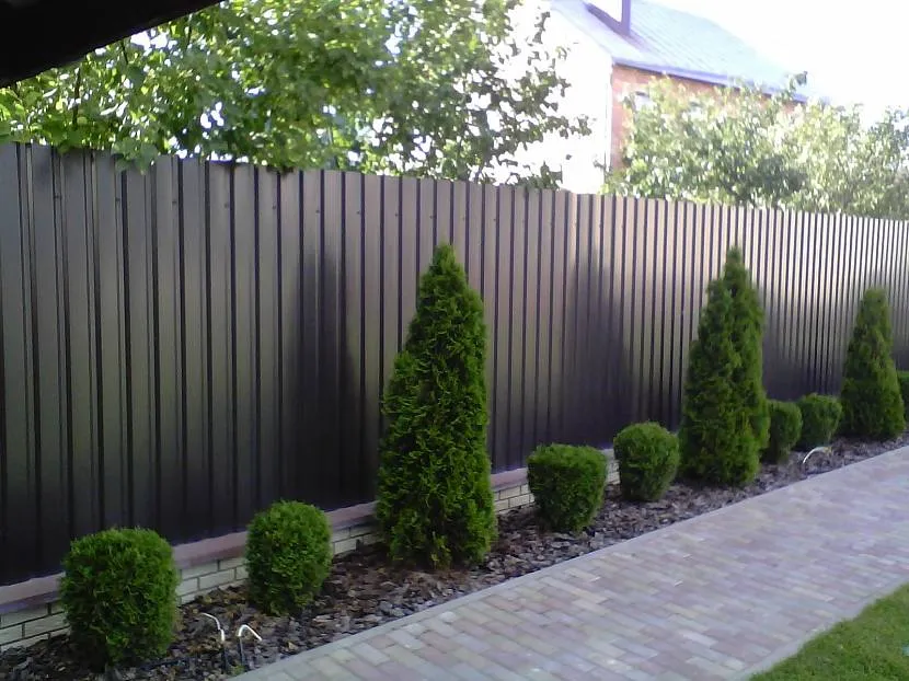 Туи рядом с забором из профнастилаИсточник design-homes.ru