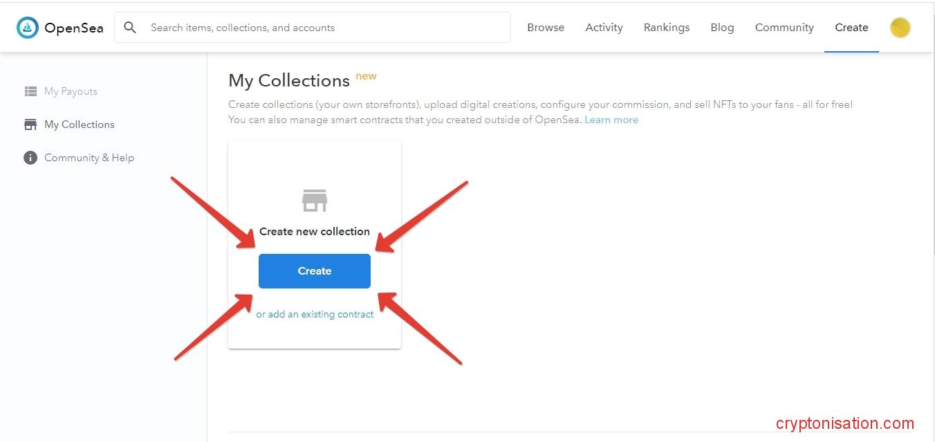 Создание коллекции на сайте Opensea