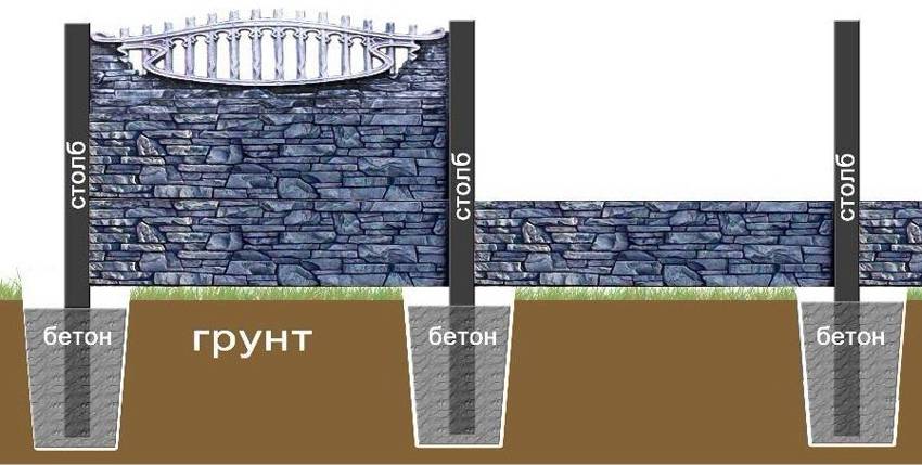 - Монолитная ограда нуждается в прочном ленточном фундаменте.