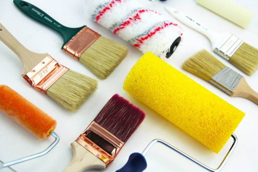 Не экономьте на инструментах. Вместе с краской приобретайте валик, который экономно и быстро распространит состав по поверхности, а также несколько кисточек. С помощью последних легко промазываются стыки и мелкие детали на двери. Не расплескать и брать дозировано краску позволяет небольшая кюветка, чуть больше ширины валика.