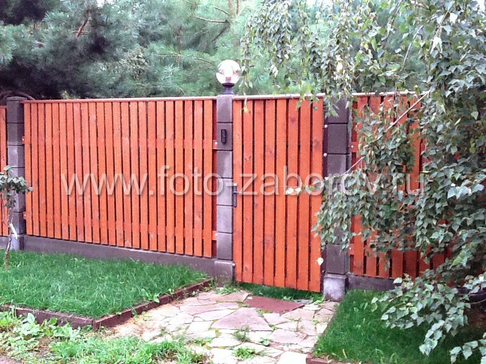 - Деревянные столбы легко компонуются с металлом, профлистом, деревянной рейкой и любым другим материалом для облицовки заборного полотна.