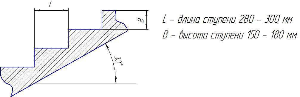 При выборе параметров ступеней надо придерживаться рекомендаций СНиПа: сумма просупи и удвоенного подступенка должна находится в пределах 600-640 мм. Например, вы рассчитали, что высота ступени (подступенок) у вас 17 см, проступь (глубина степени) 280 мм. Выполнив вычисления получаем: 170 мм * 2+280 мм = 620 мм. В рекомендованные параметры мы вписались, значит изменять ничего не надо.