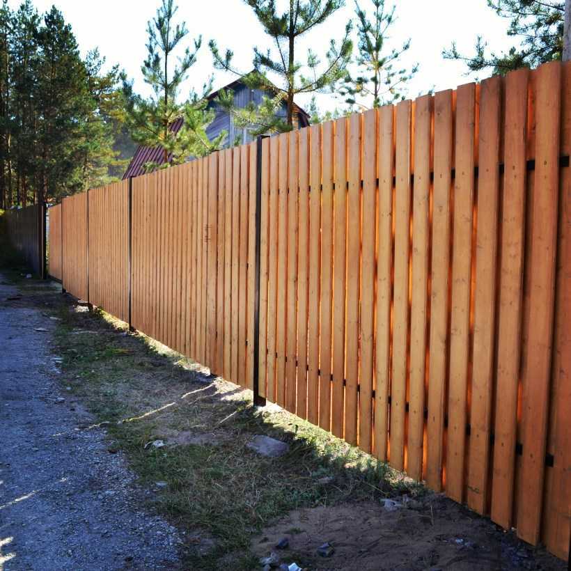 С обеих сторон ограждение смотрится идентично. Срок службы и способы ухода за конструкцией не отличаются от классического деревянного штакетника!
