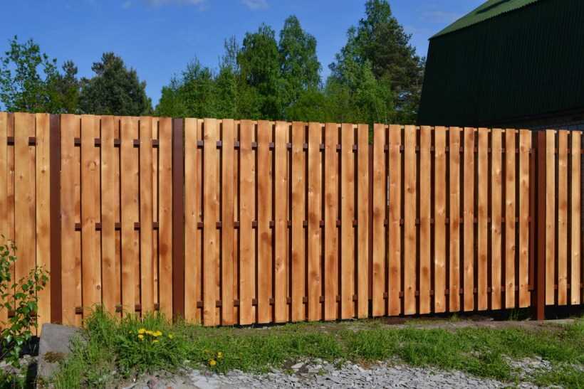 Наиболее распространенными являются заборы с вертикальными планками. Установка таких деревянных заборов осуществляется на ригели, то есть горизонтальные элементы, изготовленные из стальных профилей или деревянных кромок.