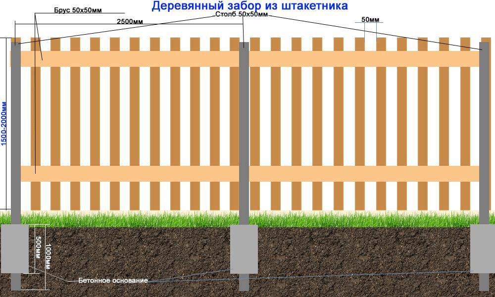 Схема деревянного штакетника