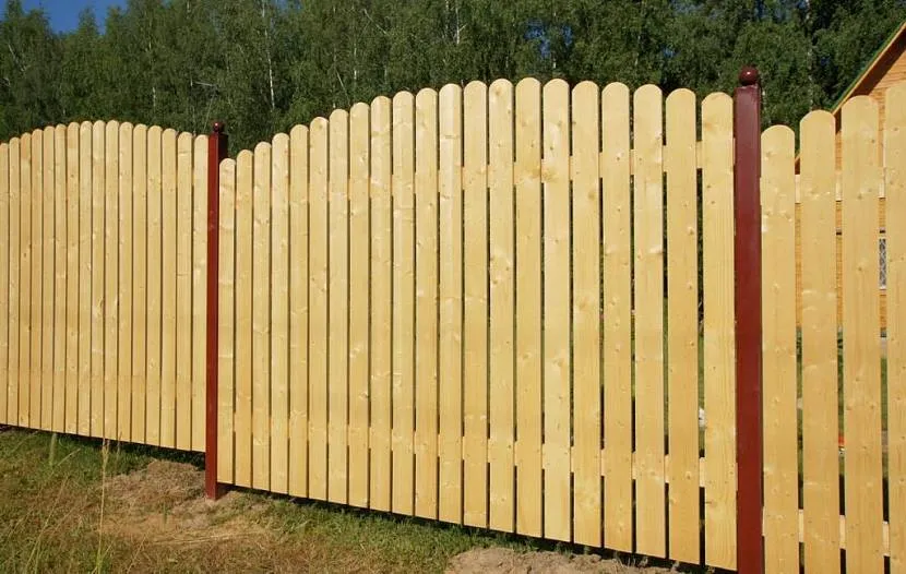 Лиственница считается лучшей породой древесины для возведения забора из штакетника. Бюджетным вариантом является сосна. Также можно использовать доски из ольхи, дуба и ясеня. Эти виды древесины имеют плотную структуру, поэтому ограждение получается прочным и долговечным.