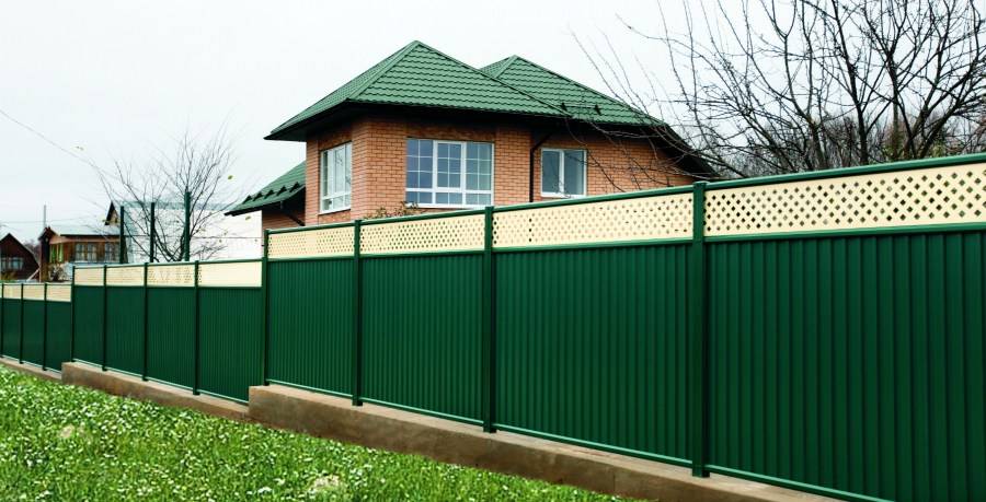 Для получения красивого ограждения можно использовать одновременно листы разных цветов, с разной высотой и типом гофры, сочетая их с красивым бетонным, каменным, кирпичным фундаментом и столбами. Здесь нет ограничения для фантазии.