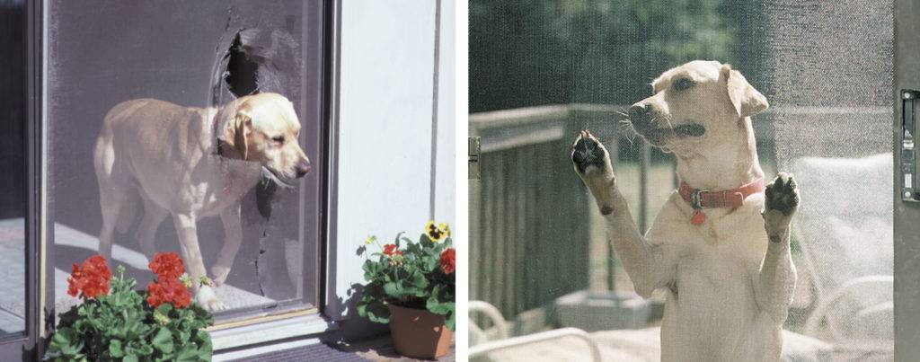 Противомоскитная сетка на дверь более прочная и толстая, а значит надежная, поэтому животное не сможет повредить её когтями, зубами или клювом и выйти на улицу.