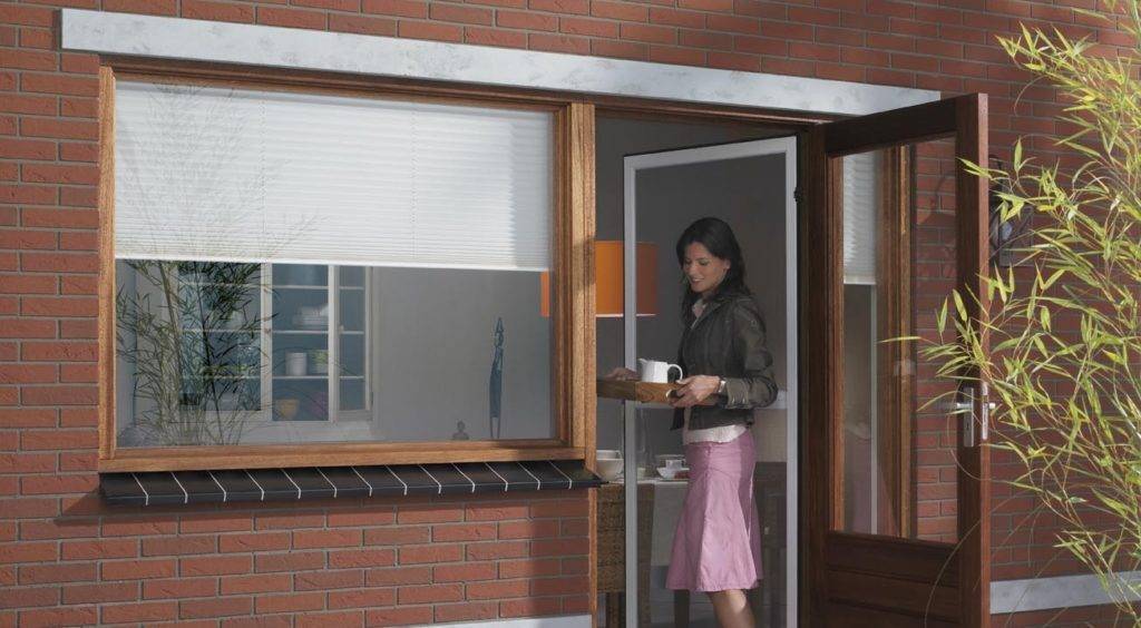 Распашные москитные сетки. Они дублируют входную дверь и крепятся на легких петлях. Подобные конструкции недороги в закупке и просты в установке, однако плохо защищают дом от москитов.