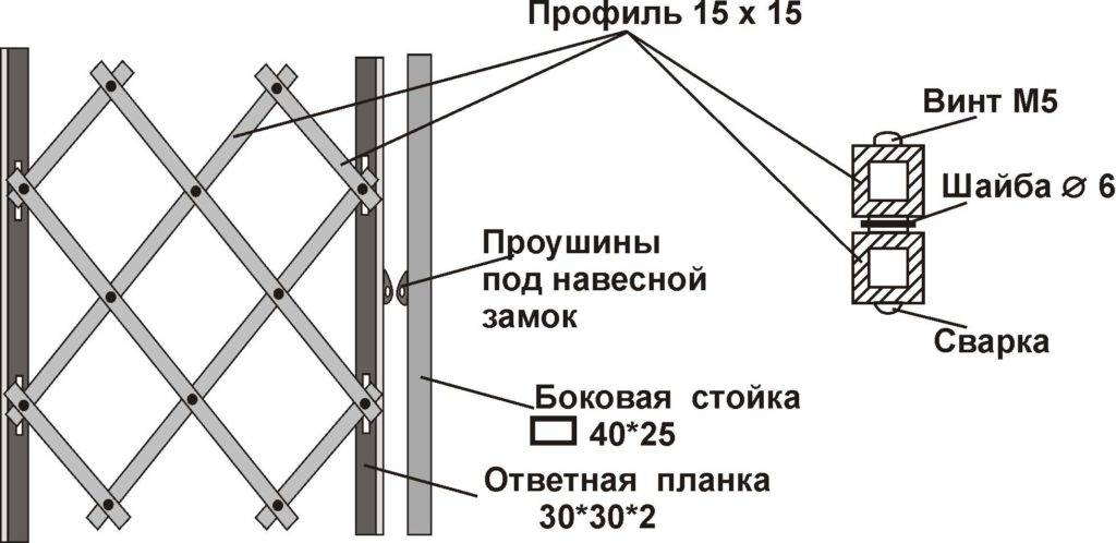 Раздвижные двери сделать сложнее, этот момент должны учитывать новички. Конструкции такого типа работают благодаря тому, что они укомплектованы большим количеством подвижных рычагов. Их механизм действия аналогичен с ножницами, раздвижная модель содержит несколько десятков таких изделий. Благодаря им решетка может сложиться в 2 полоски, из-за этого создается впечатление, что створки раздвигаются.
