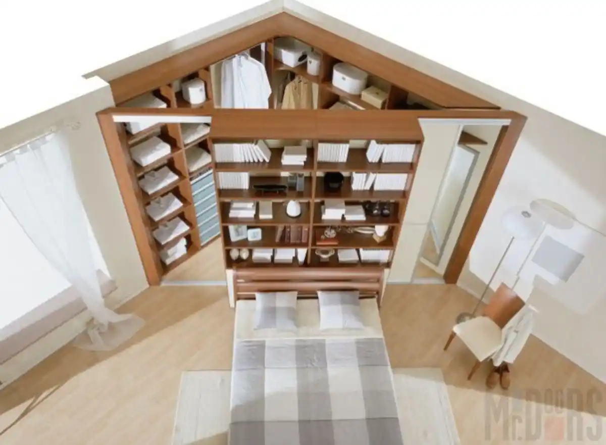 Гардеробная комната для спальни на мансардном этаже