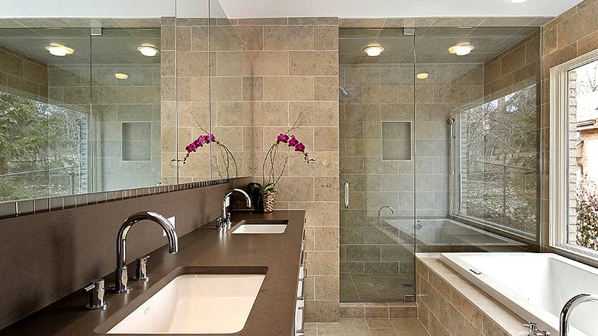 У раздвижных стеклянных дверей в ванную комнату есть немало преимуществ: