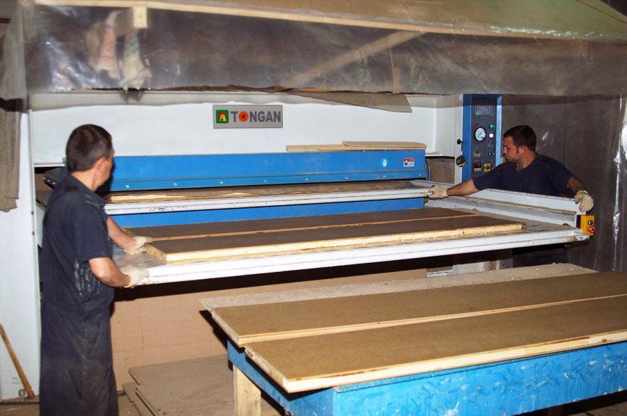 Производство шпонированных дверей возможно из массива древесины в качестве основания. Выглядит это так:
