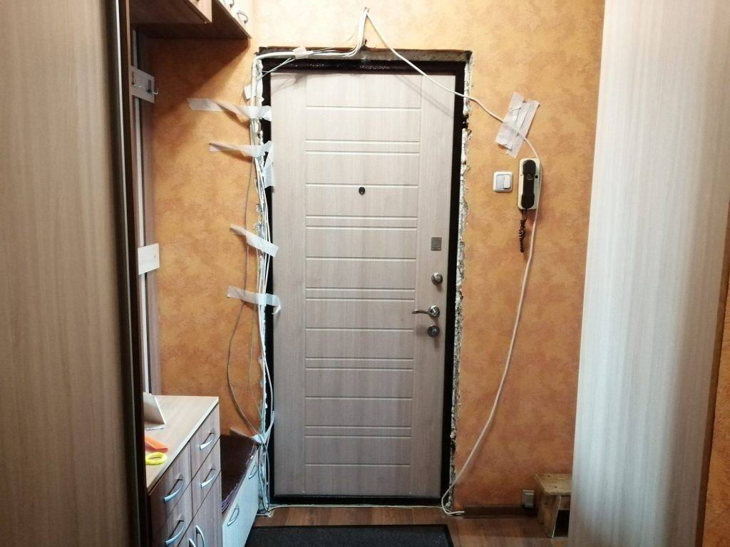 Ламинат. Тот самый, что используется для пола. Из-за плохой влагостойкости и чувствительности к перепадам температуры его используют для обшивки металлической входной двери только с внутренней стороны. Впрочем, в утепленном подъезде многоквартирного дома он также прослужит долго. Главное достоинство – дешевизна. По сравнению с МДФ такое покрытие обойдется раза в три дешевле.