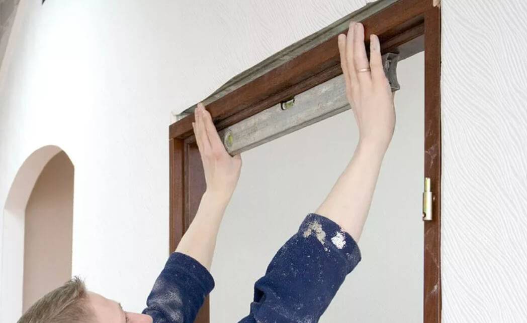 Когда рама для двери собрана, ее можно устанавливать в проем. Во время монтажа рекомендуется пользоваться строительным уровнем, что позволит выполнить установку не только правильно, но и ровно. После выравнивания рамы ее фиксируют при помощи дюбель гвоздей.