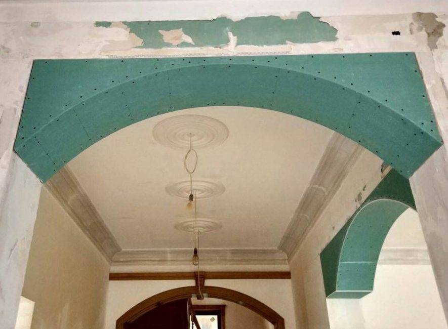 Гипсокартон завоевывает все большую популярность при отделке любых поверхностей и помещений, поэтому было бы неразумно не включит этот материал в наш список. К тому же популярность приходит неспроста – это универсальный материал для любых строительных дел, им можно выровнять любую плоскость и создать новую. Именно это качество и делает его незаменимым когда мы говорим о работе с дверными арками. Есть всего одна негативная черта у этого способа – к сожалению, гипсокартон является черновым материалом – с помощью него можно лишь создать поверхность для последующей обработки, то есть в любом случае декорирование придется произвести отдельной процедурой.