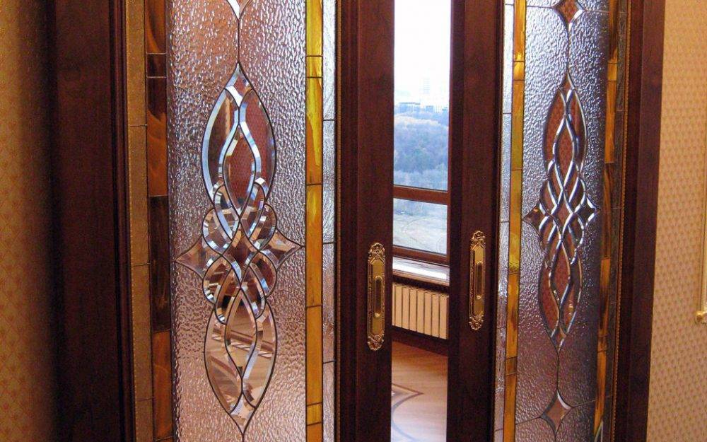 Иногда применяют в качестве вставок витражи — украшенный такими элементами дизайн двери становится более привлекательным. Варианты с равными по ширине створками (симметричными) и неодинаковыми (несимметричными) являются популярными в частных домостроениях, квартирах и общественных помещениях. Выбор материала двухстворчатой двери зависит от сферы назначения помещения, соответствия под стиль интерьера, личных вкусов владельцев.