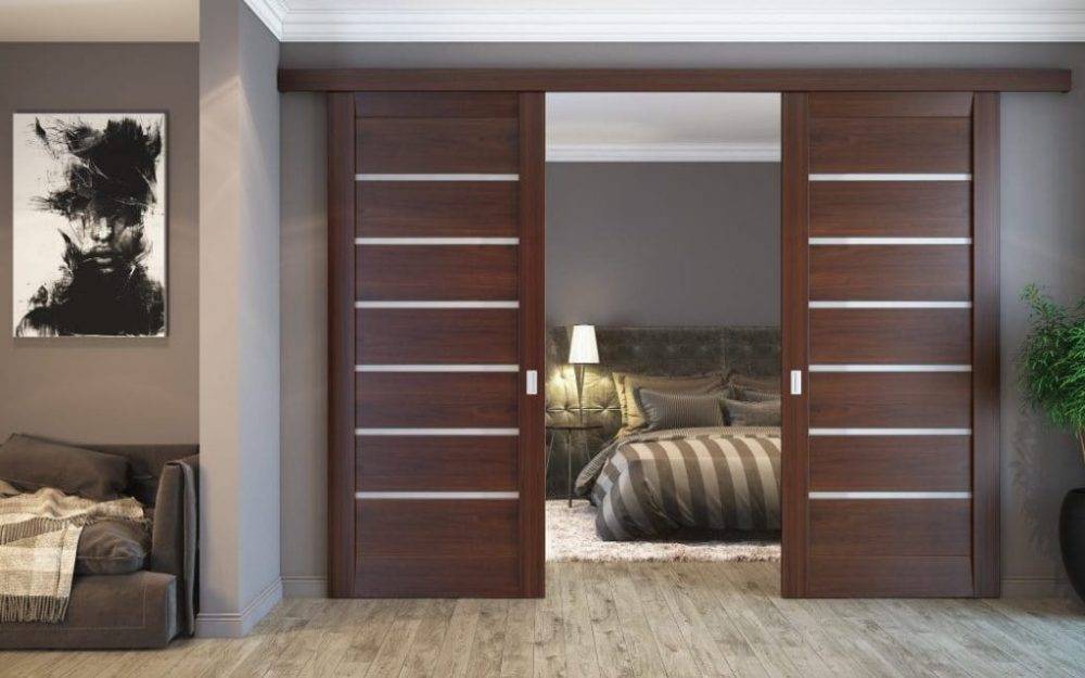 Конструкция состоит из непосредственно дверных полотен, которые движутся в стороны по направляющим. В зависимости от устройства и расположения направляющих существует несколько типов моделей. Рассмотрим, какие бывают виды межкомнатных раздвижных дверей.