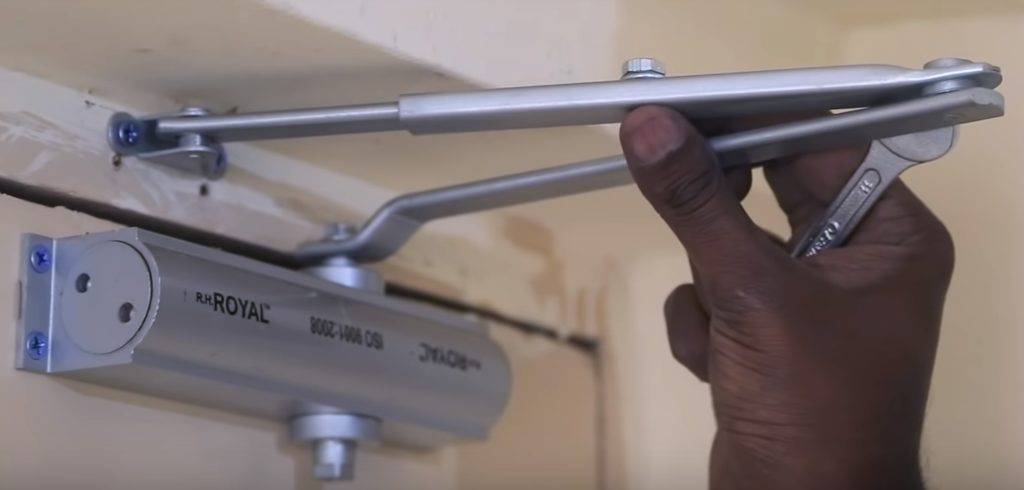 Для наружных доводчиков обычен рычажный механизм с верхним типом фиксации (справа или слева, в зависимости от двери).
