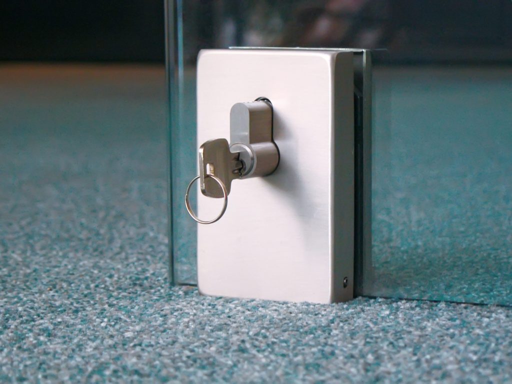 Стеклянная дверь не всегда выполняет только декоративные функции. Чтобы обезопасить помещение от недоброжелателей, стоит укомплектовать их замком. На прозрачные створки устанавливают только накладные разновидности запирающих механизмов, врезные невозможно монтировать из-за хрупкости материала.