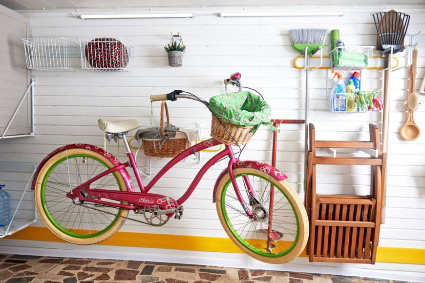 Отметим, что некоторые варианты хранения велосипедов мы уже приводили в статьей про обустройство гаража. Поэтому постараемся не повторяться.