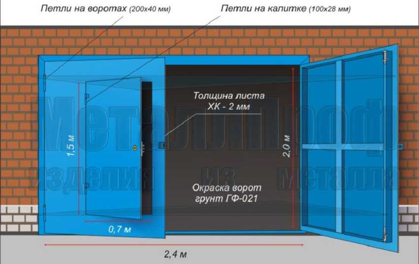 Ворота чаще всего используются металлические. Лучше всего приобрести уже готовые, чтобы ускорить время работы.