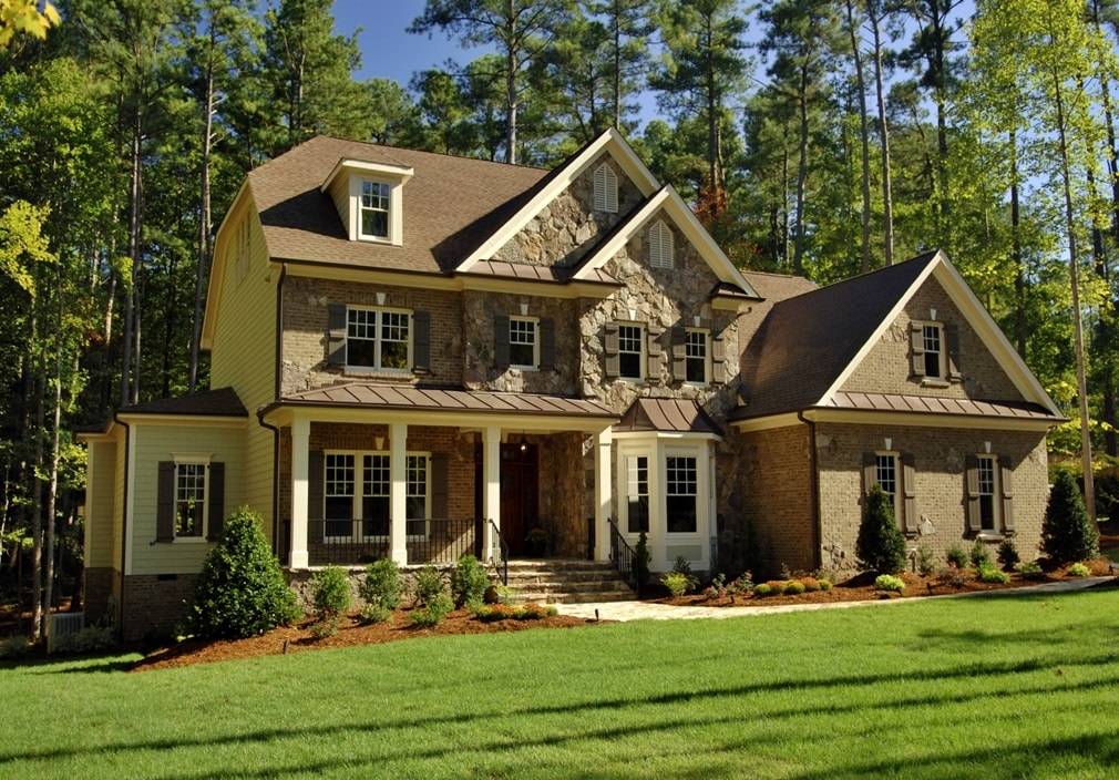 Девиз кантри – простота и удобство. В нем есть своя красота. Его поклонники – люди, уставшие от шума больших городов и скучающие по размеренной деревенской жизни. Такие дома строят из камня, дерева, бруса. Это и внушительные особняки, и небольшие альпийские шале, подчеркнуто грубоватые срубы из неотесанных бревен. Массивная двускатная крыша, колонны, балконы, небольшое крыльцо – черты кантри, которые могут комбинироваться по усмотрению дизайнера и проектировщика. Коттедж должен смотреться естественно на фоне природного ландшафта. Планировка свободная. Гостиная, кухня, столовая объединены в общую зону. Другие помещения также открыты и доступны. Интерьер кантри воспринимается как единое пространство. Зонирование условное, достичь его помогает правильно расставленная мебель.