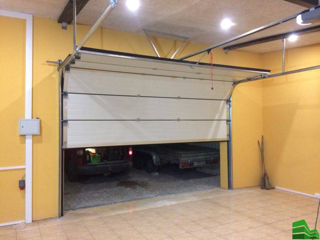Несколько сегментов составляют это сооружение. Они расположены на одном горизонтальном уровне. Части скреплены петельным методом. Наверху монтажники устанавливают поднимающий механизм. Он-то и поднимает двери. Они остаются открытыми в горизонтальном расположении вдоль потолочной поверхности.