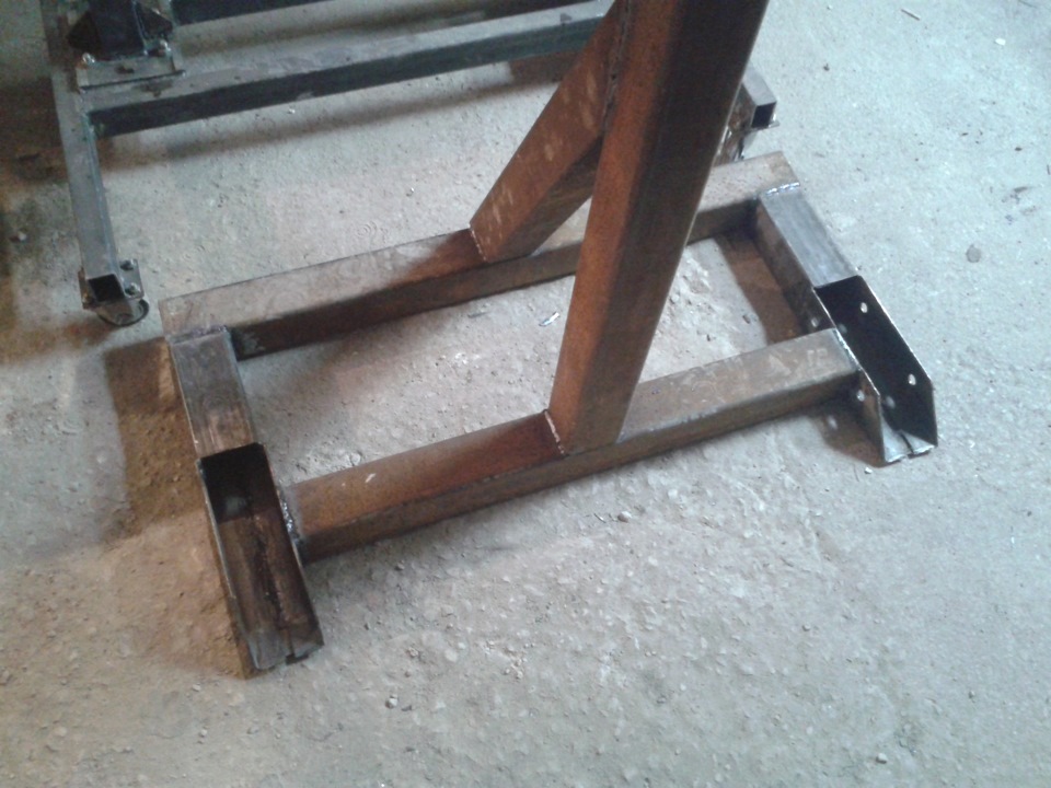 - Сварить вертикальные опоры в виде перевёрнутой буквы Т с двумя диагональными опорами.