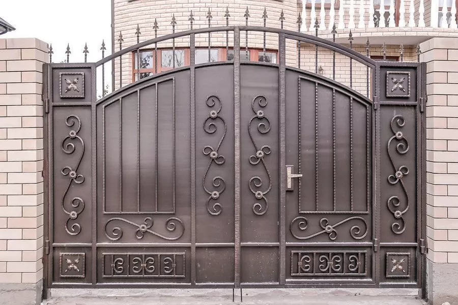 Распашные модели с калиткой имеют самые разные габариты. В высоту они могут достигать 5 м. Это позволяет понизить риски, связанные с проникновением преступных элементов.