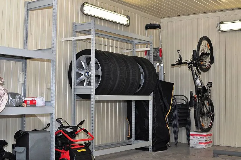 Если ваше помещение для автомобиля построено из металла, то нужно будет уделить повышенное внимание температуре и влажности воздуха. Также в этом случае вам удобно будет использовать полки для хранения колёс в гараже на стене
