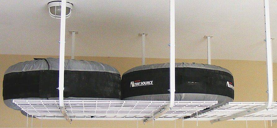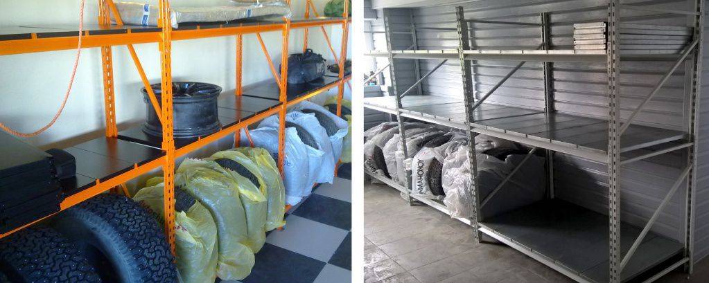 Стеллажи — в идеале необходимо хранить шины в гараже на специальных стеллажах или же на ровном полу. Стеллаж для шин в гараж должен быть ровным, без выпирающих углов